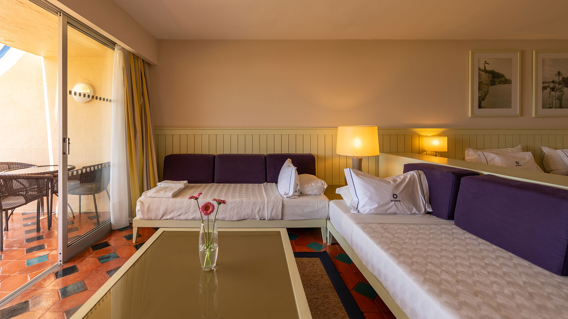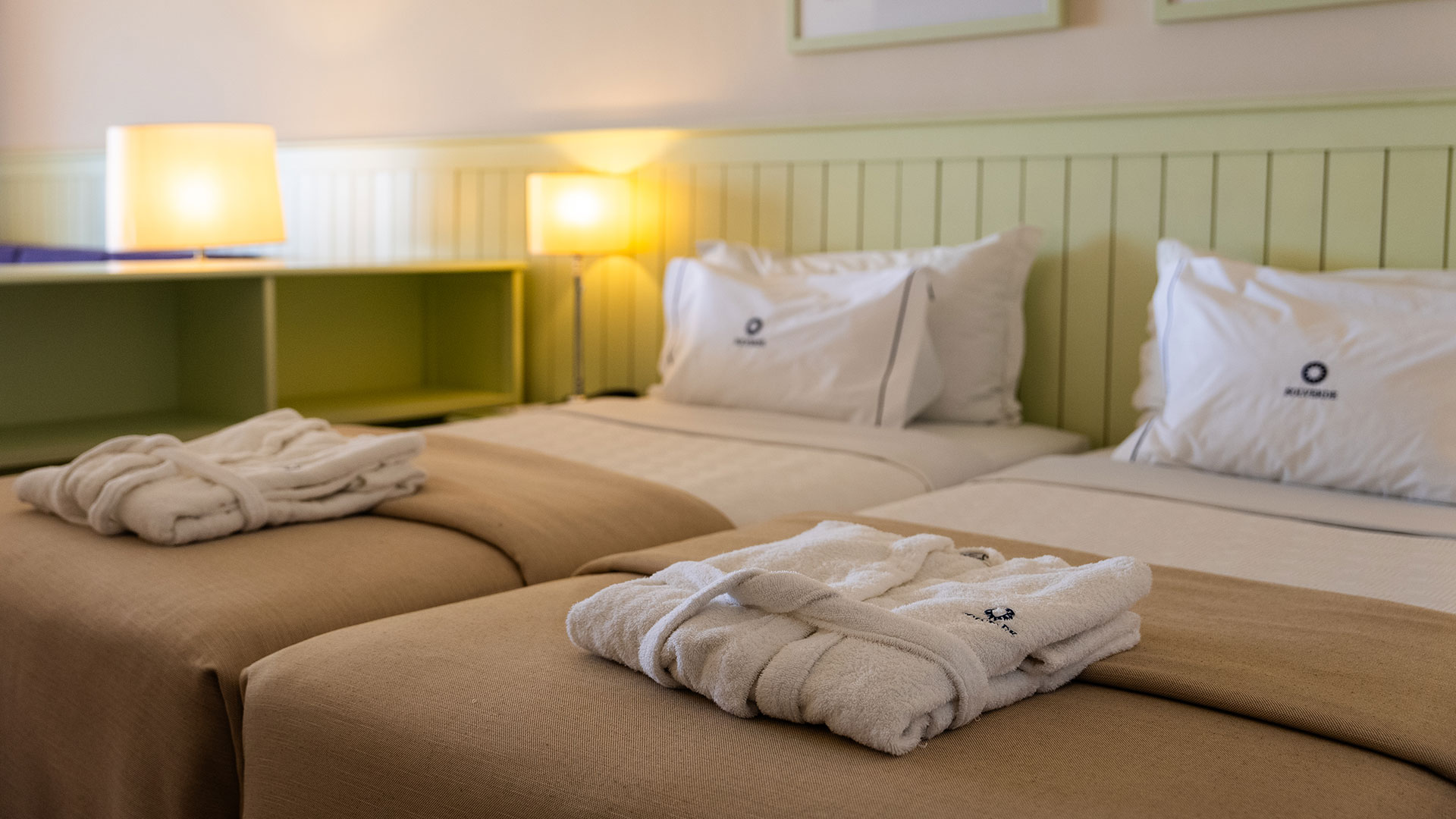 - 2 x twin beds (1,10 x 2,00 m / each) or 1 x double bed (1,80 x 2,00 m) on request + sofa bed.