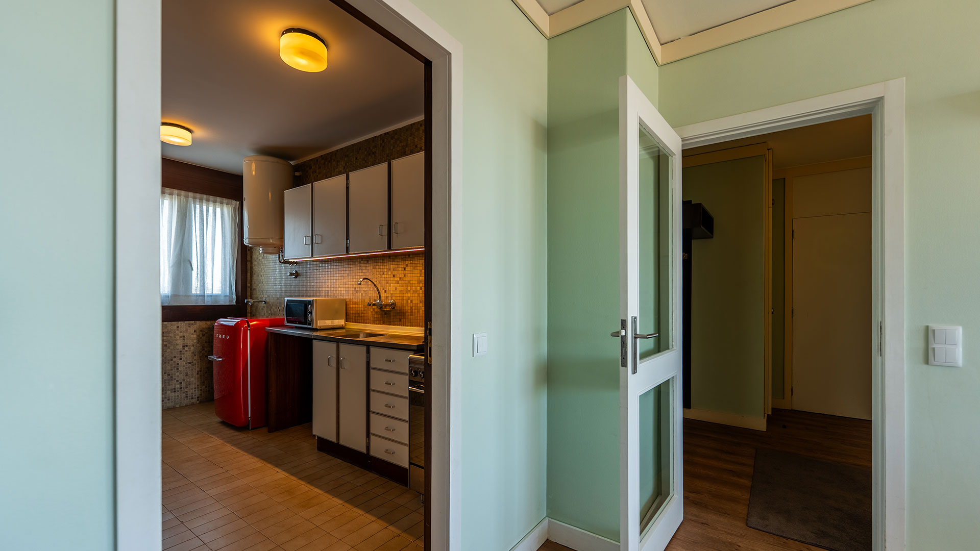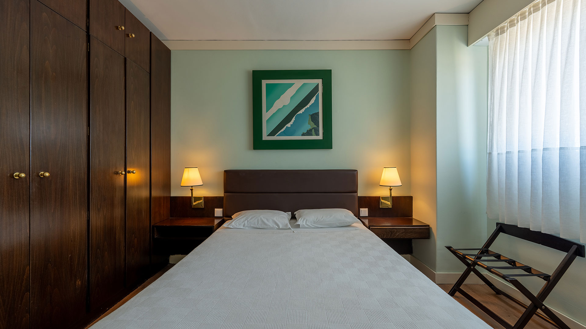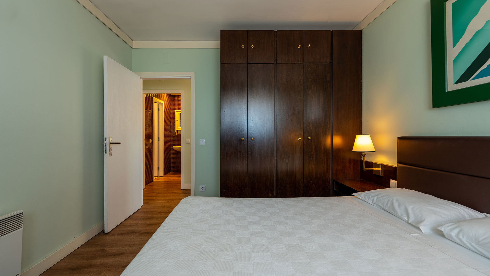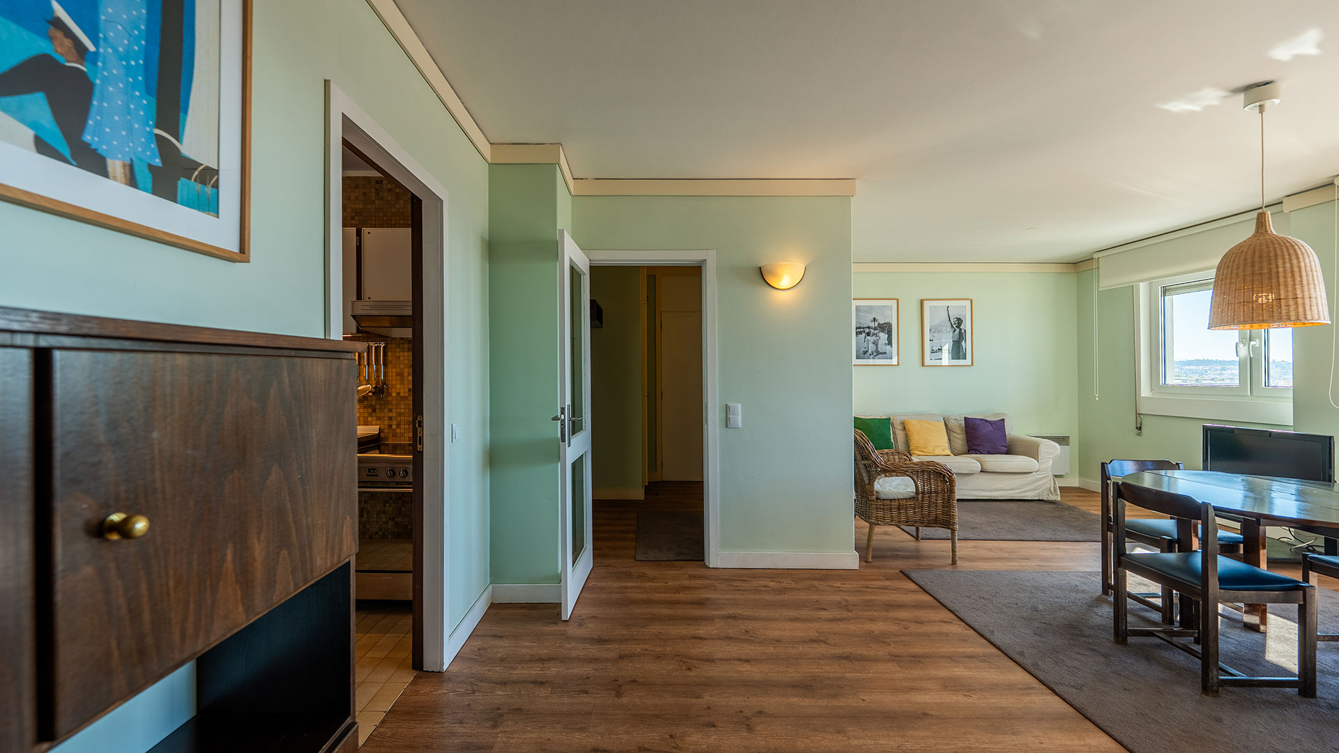 Quarto com cama de casal, quarto com duas camas individuais, sala com uma ou duas camas suplementares, casa de banho, cozinha equipada e varanda.