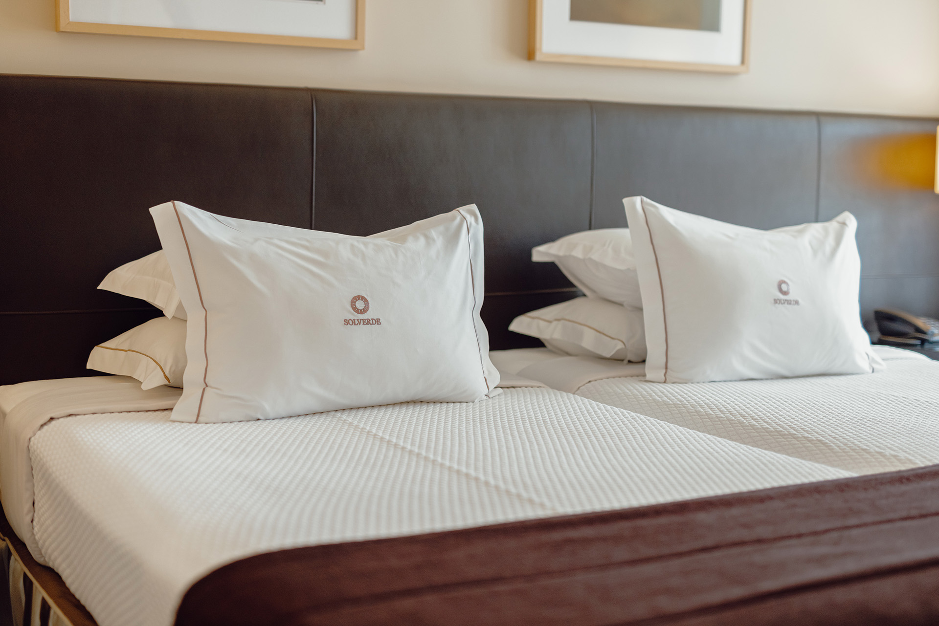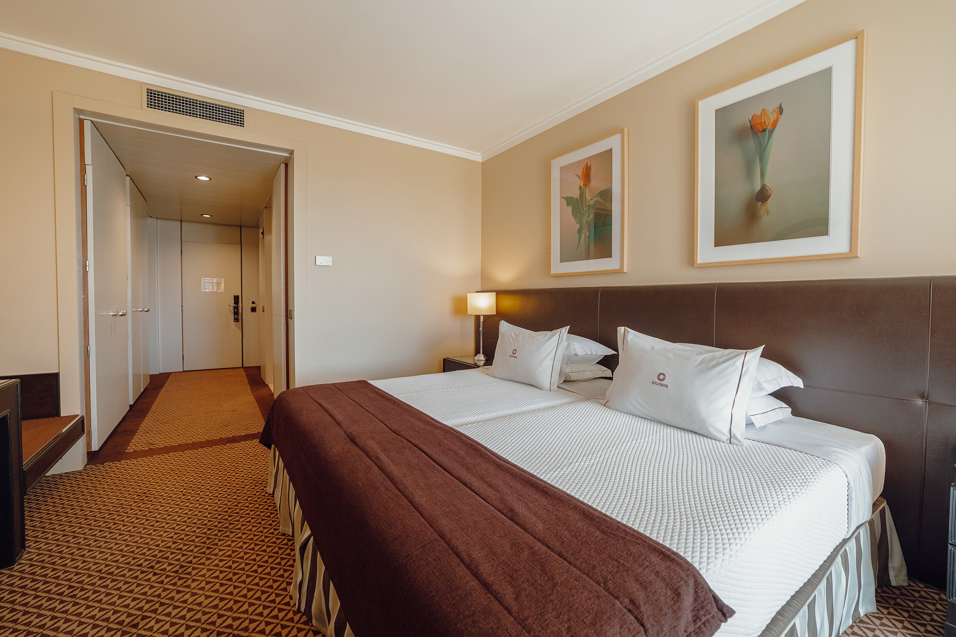 Este espaçoso quarto com cerca de 30 m², disponibiliza uma cama de casal 1,80 x 2,00 m ou duas camas 1,10 x 2,00 m, secretária, TV-LCD e Wi-fi gratuito. Ocupação máxima 3 pessoas.